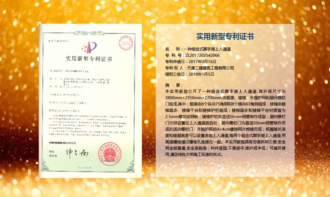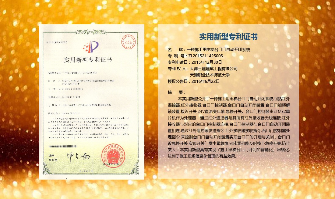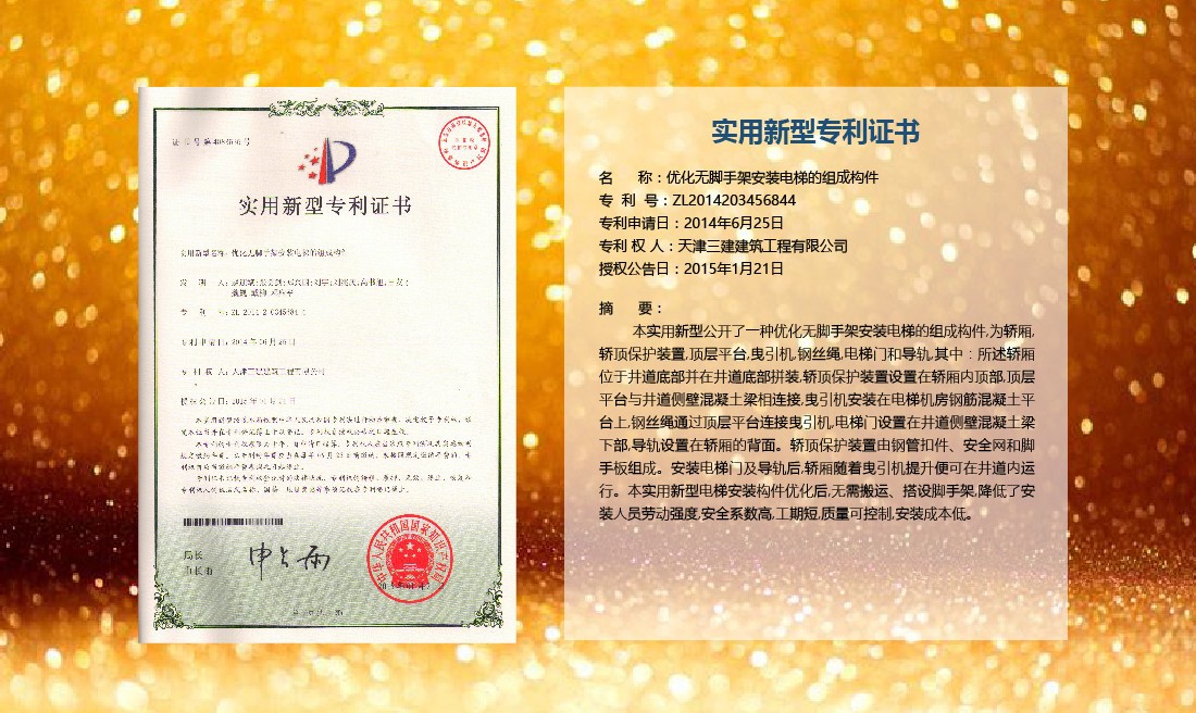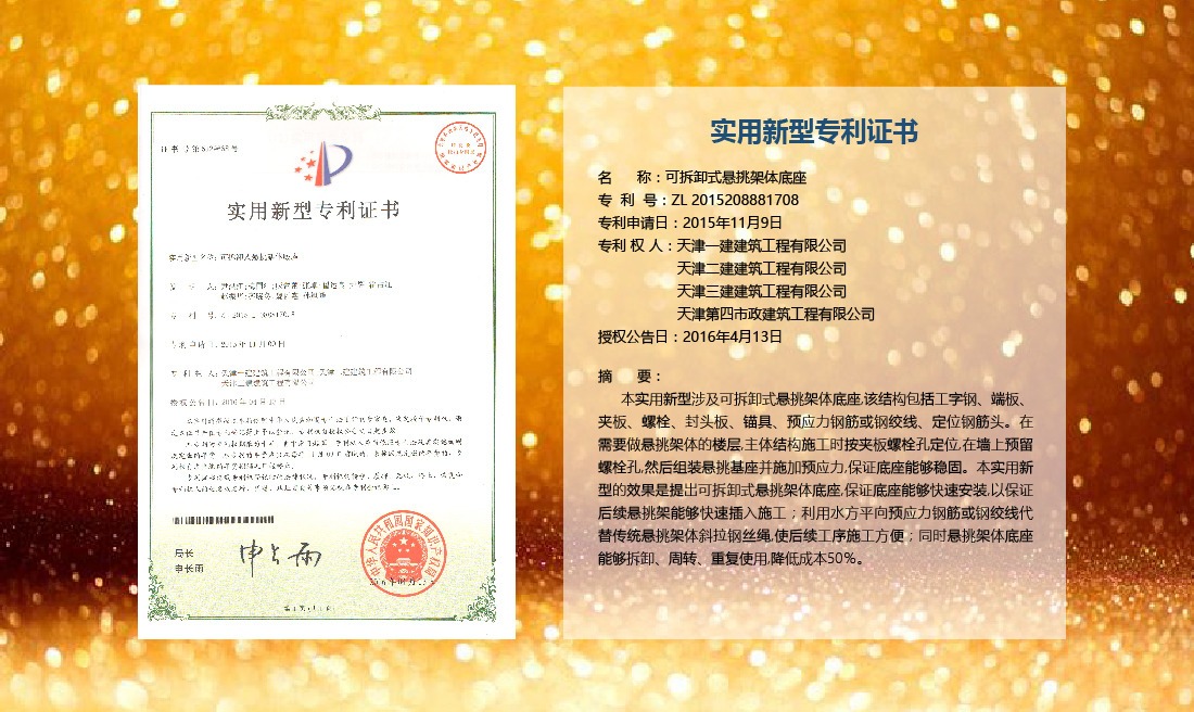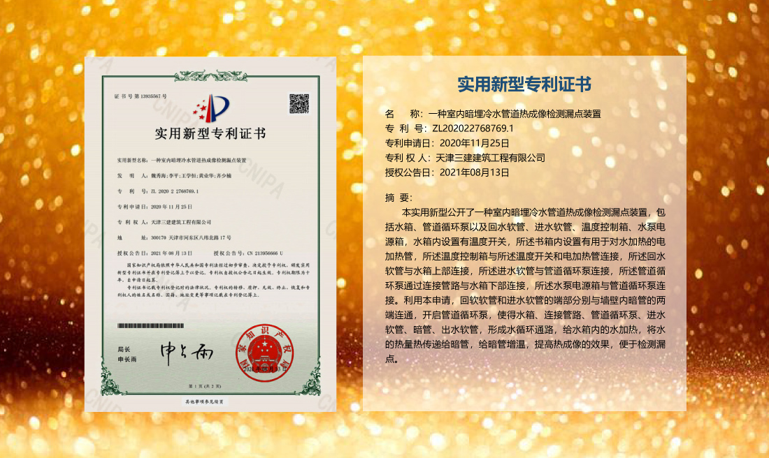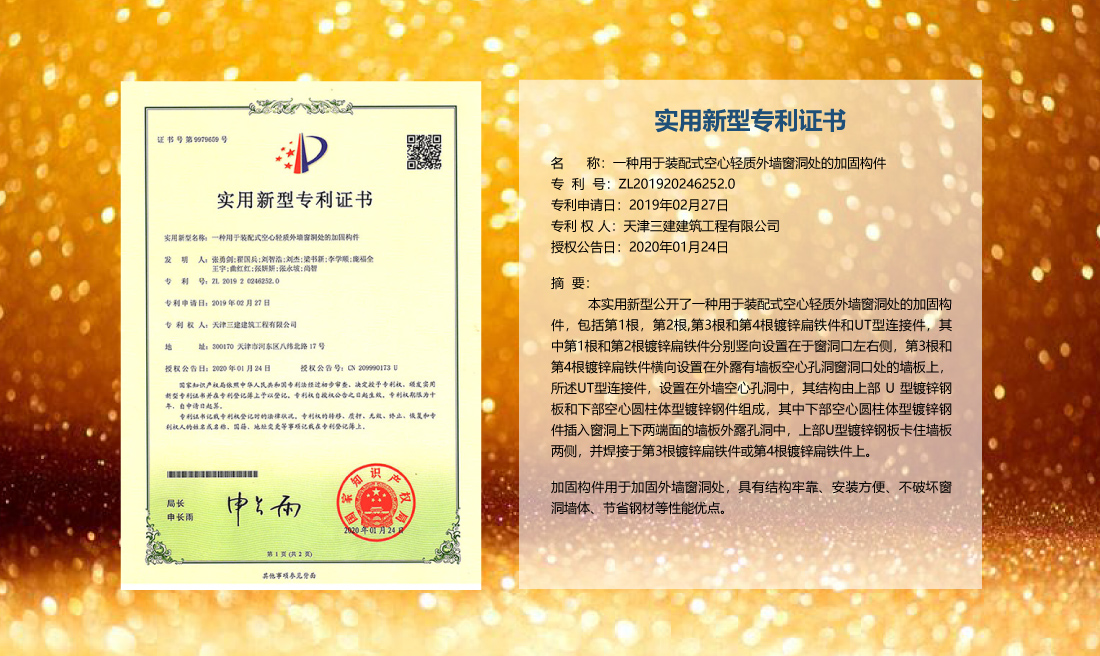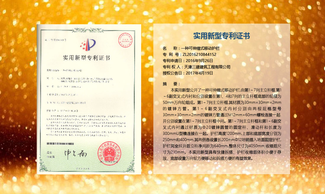 三建公司在總結(jié)施工經(jīng)驗(yàn)的基礎(chǔ)上,不斷發(fā)明創(chuàng)新,共獲得國家知識(shí)產(chǎn)權(quán)局授權(quán)專利71項(xiàng),其中,國家發(fā)明專利12項(xiàng),國家實(shí)用新型專利59項(xiàng)。囊括建筑、市政、巖土、道橋等多領(lǐng)域,凝聚了公司廣大工作人員的寶貴智慧和工程建筑者們的辛勤汗水。