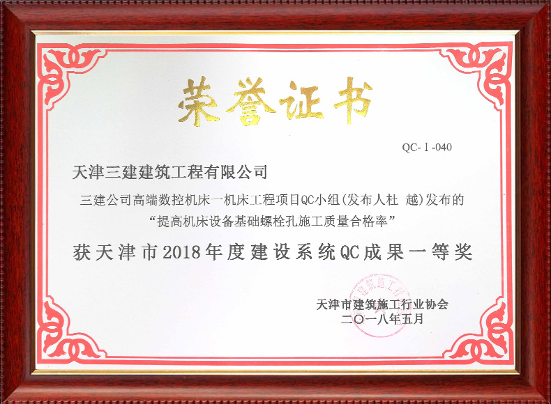 2018安裝分公司QC成果一等獎